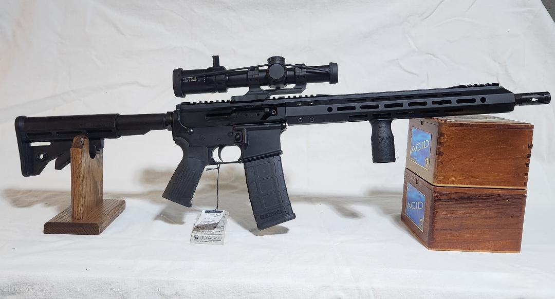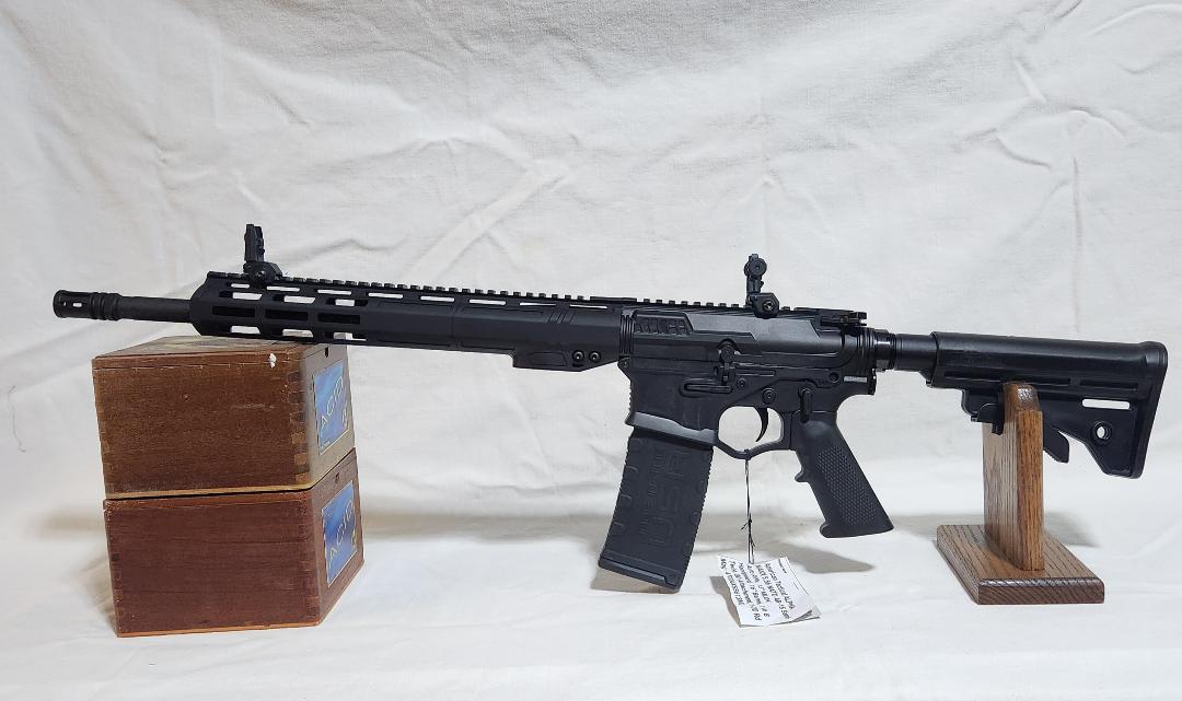 Chambered in “Multi”, accepting both 5.56 NATO and .223. 16″ barrel, 1:8 twist. 13″ MLOK handguard. QD attachment. Standard flip front and rear sights. 1 magazine.